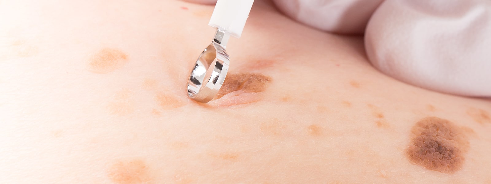 Met een steriel, scherp, metalen ringetje worden de ouderdomswratjes ter hoogte van de gezonde huid geschraapt. Dit is een uiterst veilige methode die zeer nauwkeurig werkt, waardoor het omliggende gezonde weefsel niet wordt aangetast en er geen littekenweefsel ontstaat.